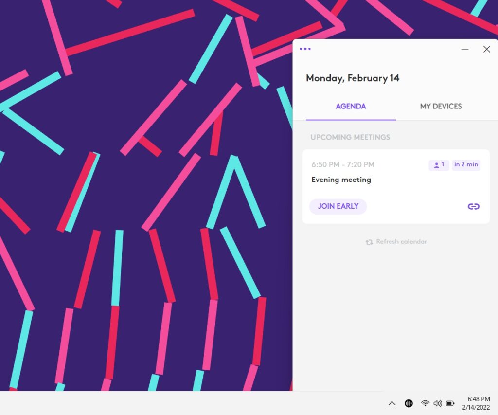 Just install the app from Logitech’s website, then click on the “Agenda” tab at the top. After connecting your Google or Microsoft account, you’ll see a preview of any upcoming calendar events. The app also displays a one-click join button for virtual meetings in Zoom, Google Meet, and Microsoft Teams, and it will alert you just before the meeting starts. (Windows users should also consider dragging the app from the system tray to the taskbar so it’s always visible.)