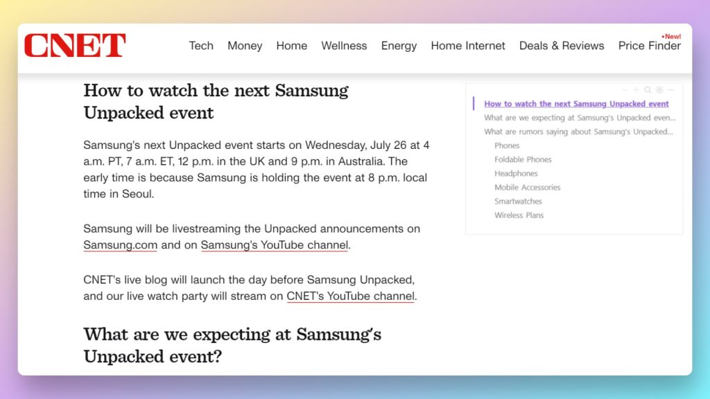 With a table of contents extension, you can jump directly between an article’s subheadings—which themselves are often inserted to satisfy Google—and answer your questions faster. The Smart TOC extension works pretty well, generating a list of headings in a pop-up window when you click the extension icon.