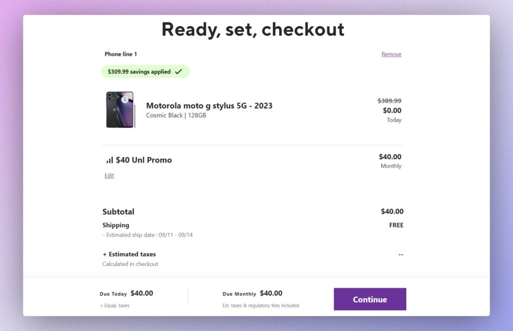 After entering your payment info, confirm that you’re only being charged $40 on the final checkout page, then click “Place your order.” The phone will ship along with a SIM card that you can use to activate service online. The folks at Slickdeals suggest avoiding Metro stores at all costs so you don’t get upsold on extra service.