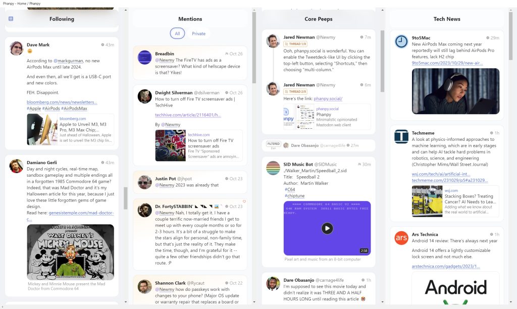 Make Mastodon delightful: If you’re a fellow Mastodon user, give Phanpy a try. It’s my favorite third-party web client of the moment, with a beautiful interface and some clever touches, like the way it groups notifications by day and consolidates boosts into a carousel view. It also supports a Tweetdeck-like multi-column layout, which you can enable by clicking the top-left menu button, then heading to Shortcuts / Columns > Multi-Column. (While you’re at it, say hi!)