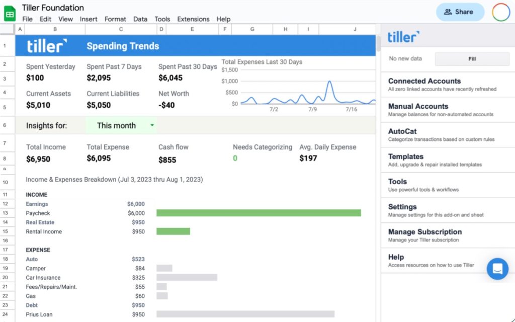 Michelle G. is using Tiller, which costs $79 per year after a 30-day trial:
