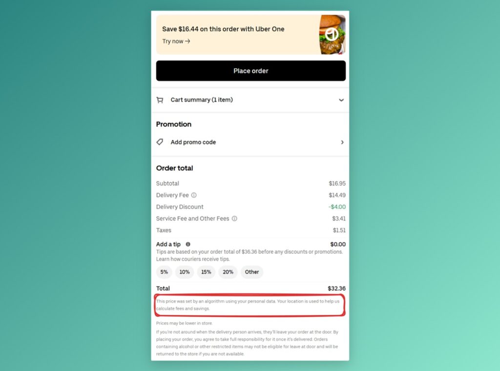 The New York State law doesn’t ban surveillance pricing, but it’ll at least reveals which companies are engaging in it. So far, customers have reported seeing the disclaimer in Uber Eats, Doordash, Target, Postmates, and the Washington Post, and I’m sure that’s just scratching the surface. If a companies are setting personalized prices in New York, they’re probably doing it elsewhere without any disclosure.