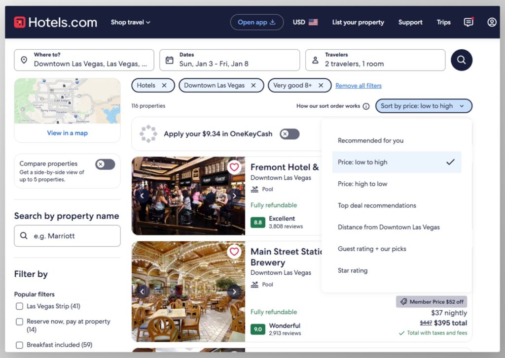 With that in mind, here’s an oldie-but-goodie from the Advisorator archives: Whenever you’re shopping online, look for the option to sort by price from low to high, then use additional filters such as star rating or features to narrow things down. Don’t trust the default “recommended” results, which might steer you toward pricier options. I can’t tell you how many times I’ve found cheaper hotels and rental cars just by sorting the results.