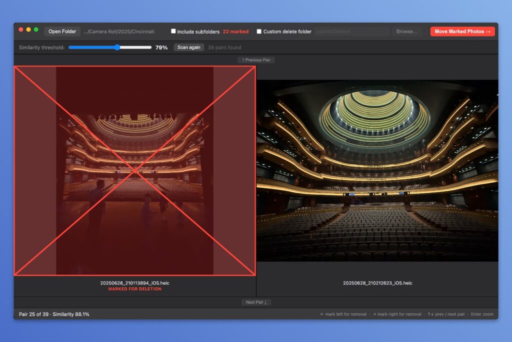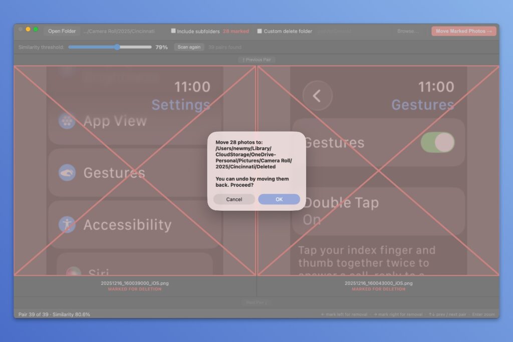 Newmy’s Photo Cleaner looks through any folder on your Windows PC or Apple silicon Mac to find similar-looking photos, then lets you sort through them all with keyboard shortcuts. It’s a super efficient way to unclutter your photo collection, and it works entirely offline.