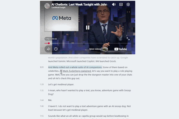 Even cooler: Reader mode works with YouTube, showing a transcript that auto-scrolls with the video and lets you click on text to skip around.