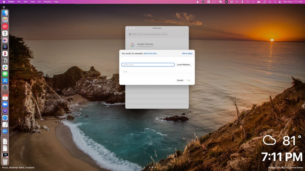 Put your wallpaper to work: Plash is an extremely cool Mac app that turns websites into desktop wallpapers. Just install the app and select a website, and Plash will make it your background, even updating it in real-time. (You can also enable "Browser" mode in the menu bar to make changes on the page.) |